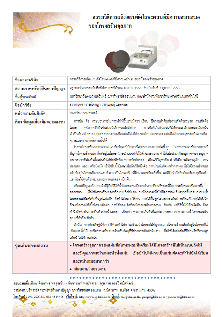 กรรมวิธีการผลิตแผ่นขัดโลหะผสมที่มีความสม่่าเสมอ ของโครงสร้างจุลภาค