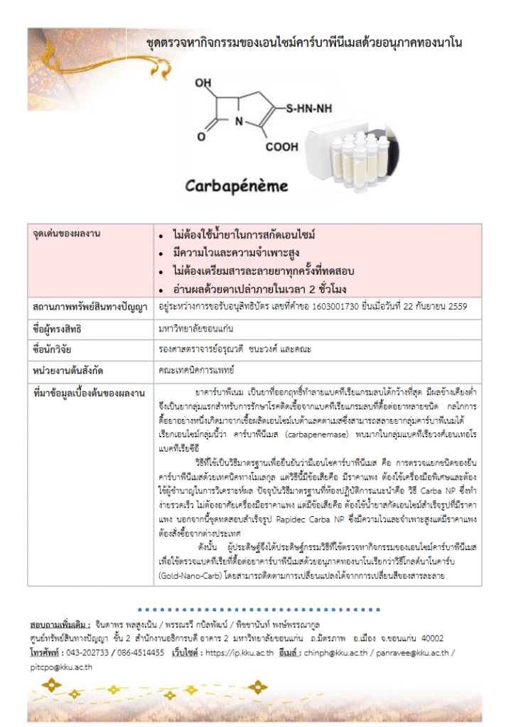 ชุดตรวจหากิจกรรมของเอนไซม์คาร์บาพีนีเมสด้วยอนุภาคทองนาโน