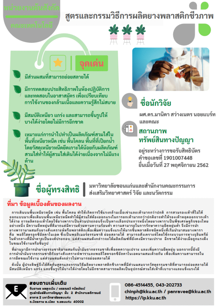 สูตรและกรรมวิธีการผลิตยางพลาสติกชีวภาพ
