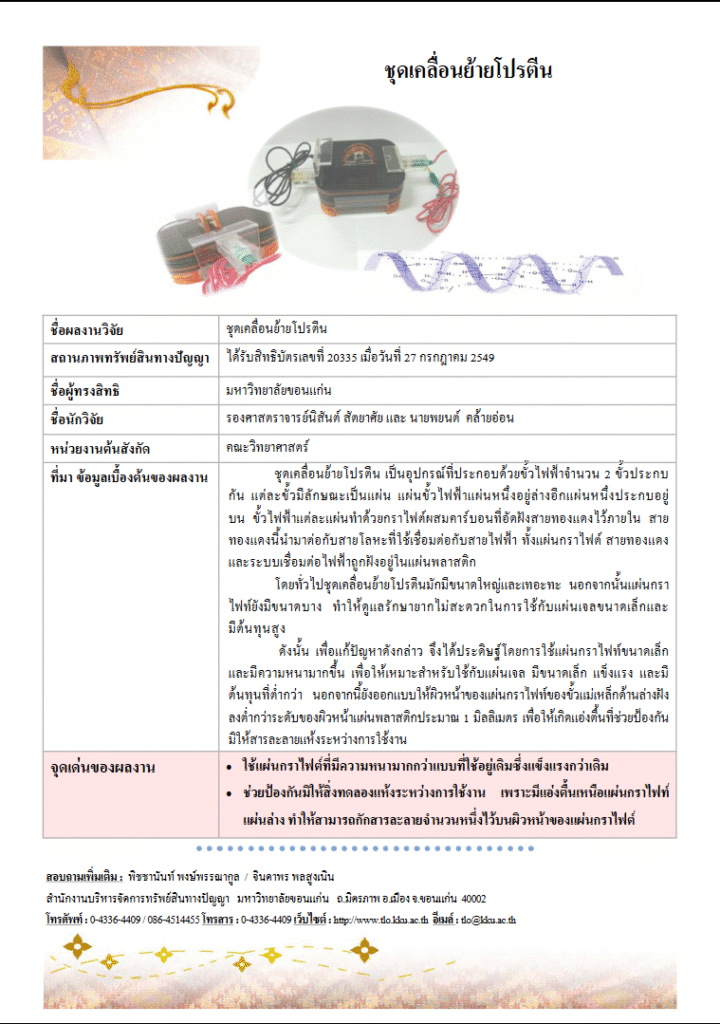 สิทธิบัตรเลขที่ : 20335 (เมื่อวันที่ 27 กรกฎาคม 2549)