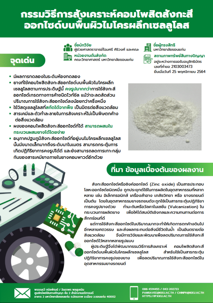 กรรมวิธีการสังเคราะห์คอมโพสิตสังกะสีออกไซด์บนพื้นผิวไมโครผนึกเซลลูโลส