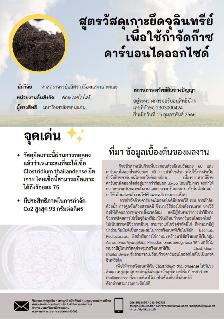 สูตรวัสดุเกาะยึดจุลินทรีย์เพื่อกำจัดก๊าซคาร์บอนไดออกไซด์