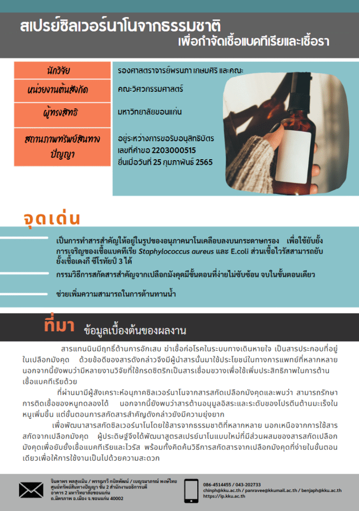 สเปรย์ซิลเวอร์นาโนจากธรรมชาติ เพื่อกำจัดเชื้อแบคทีเรียและเชื้อรา