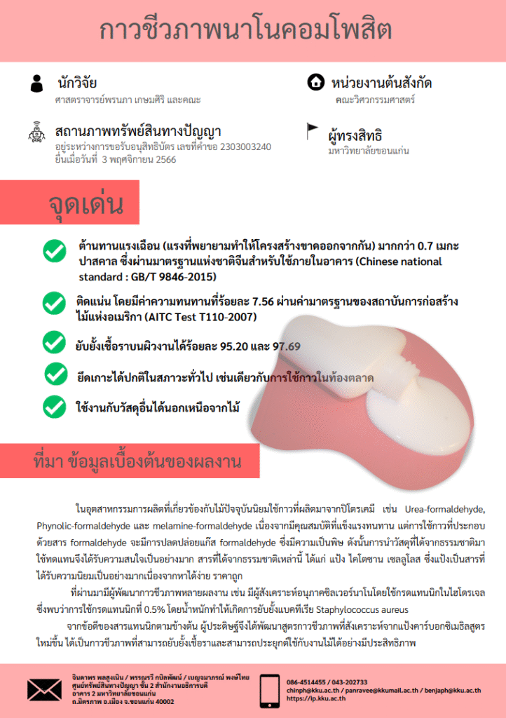 โทรศัพท์ : 086-4514455 / 043-202733 chinph@kku.ac.th panravee@kku.ac.th benjaph@kku.ac.th