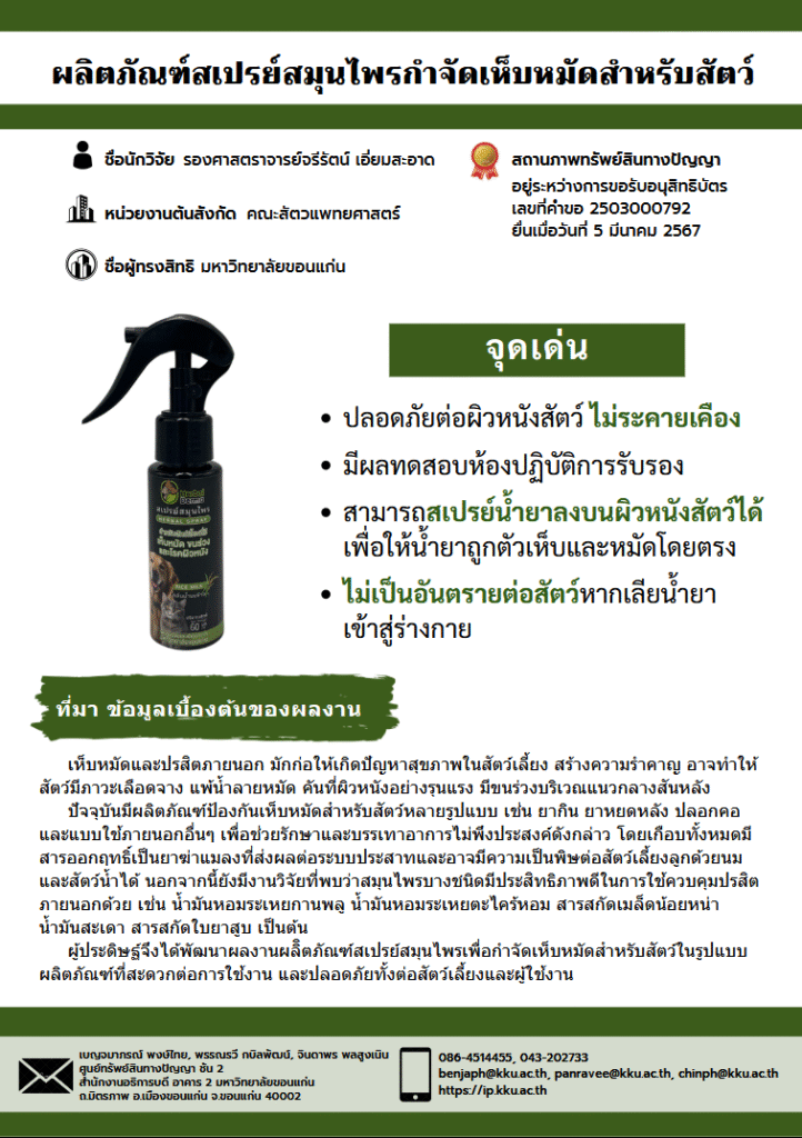 ผลิตภัณฑ์สเปรย์สมุนไพรกำจัดเห็บหมัดสำหรับสัตว์