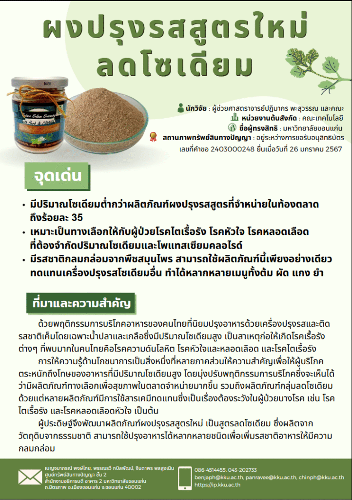 ผงปรุงรสสูตรใหม่ลดโซเดียม
