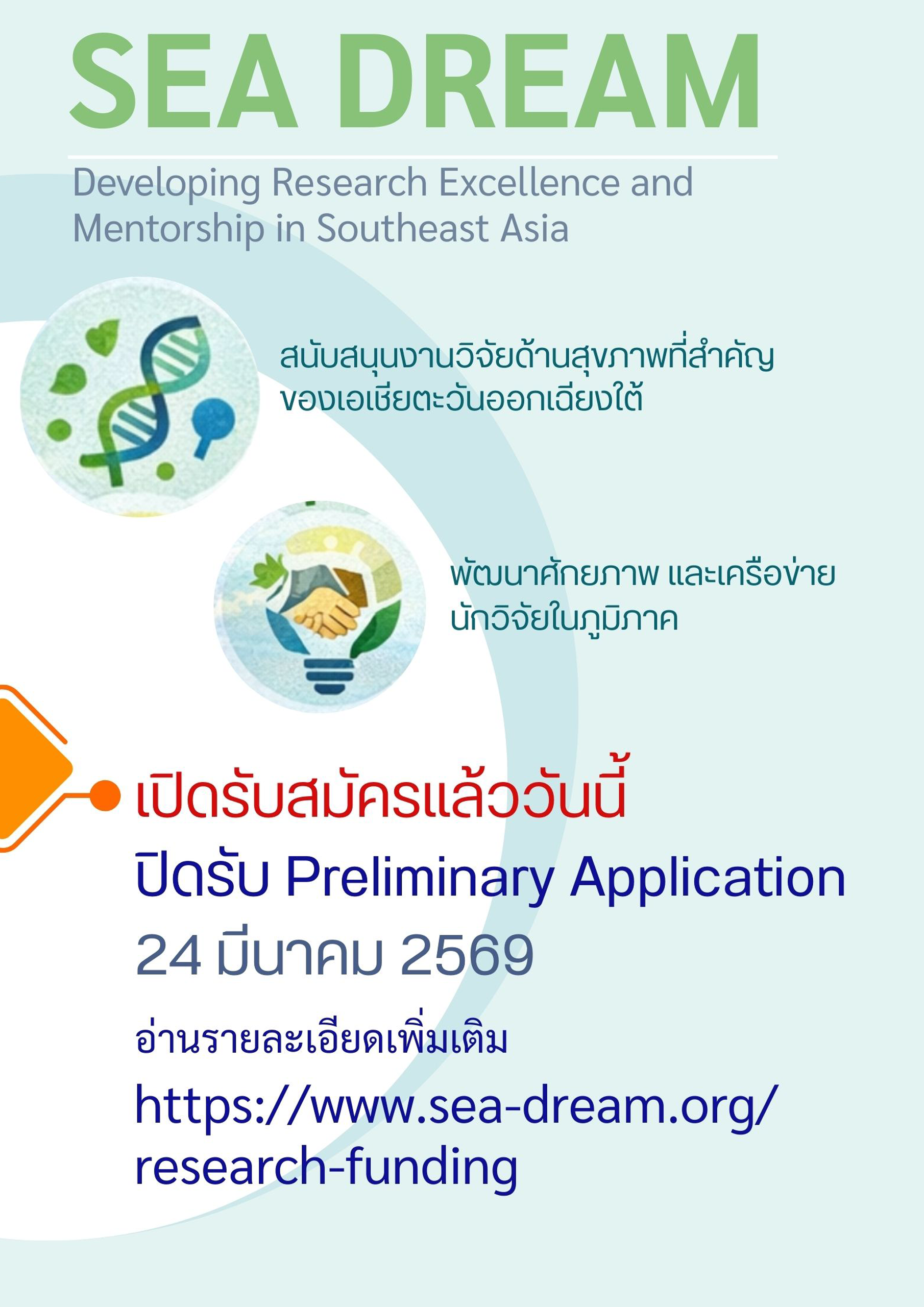 เปิดรับสมัคร “ทุนวิจัย SEA DREAM”