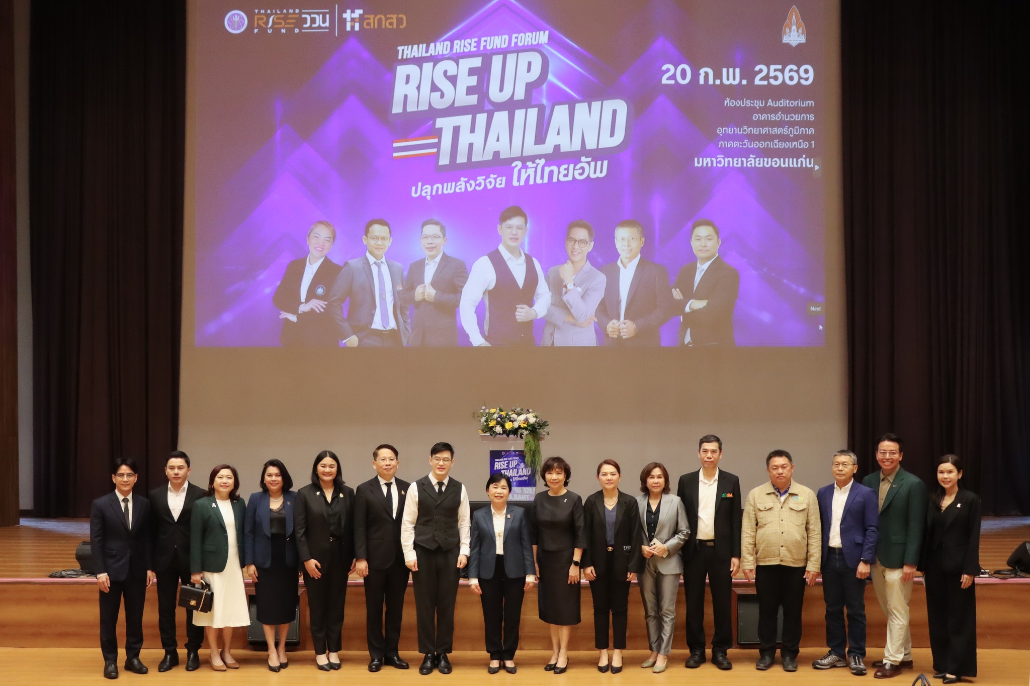ฝ่ายวิจัยและนวัตกรรม มหาวิทยาลัยขอนแก่น ร่วมกับสำนักงานคณะกรรมการส่งเสริมวิทยาศาสตร์ วิจัยและนวัตกรรม (สกสว.) จัดเวที Thailand RISE Fund Forum : RISE UP THAILAND ภาคตะวันออกเฉียงเหนือ 1 เมื่อวันที่ 20 กุมภาพันธ์ 2569 ณ ห้องประชุม Auditorium อาคารอำนวยการอุทยานวิทยาศาสตร์ภูมิภาค มหาวิทยาลัยขอนแก่น