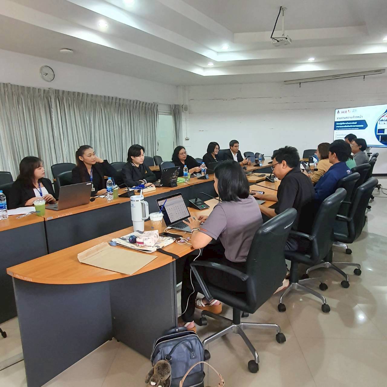 On this occasion, the working team of the Research Instrument Center presented a comprehensive report on its operational performance and provided relevant information to the executive delegation. Both parties engaged in constructive dialogue on challenges, technical constraints, and capacity-building pathways necessary to align laboratory operations with Thailand’s National Quality Infrastructure (NQI) framework.
