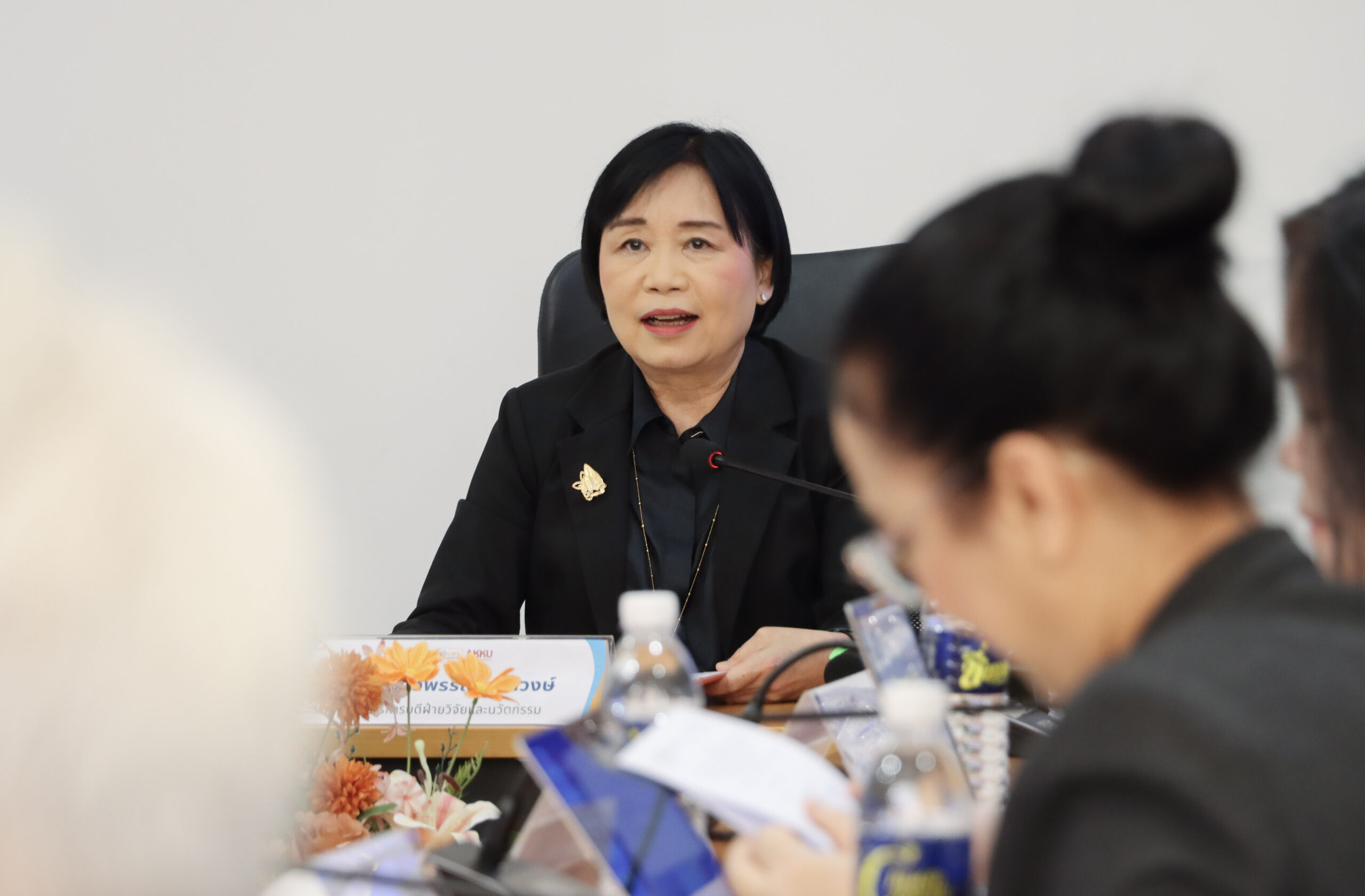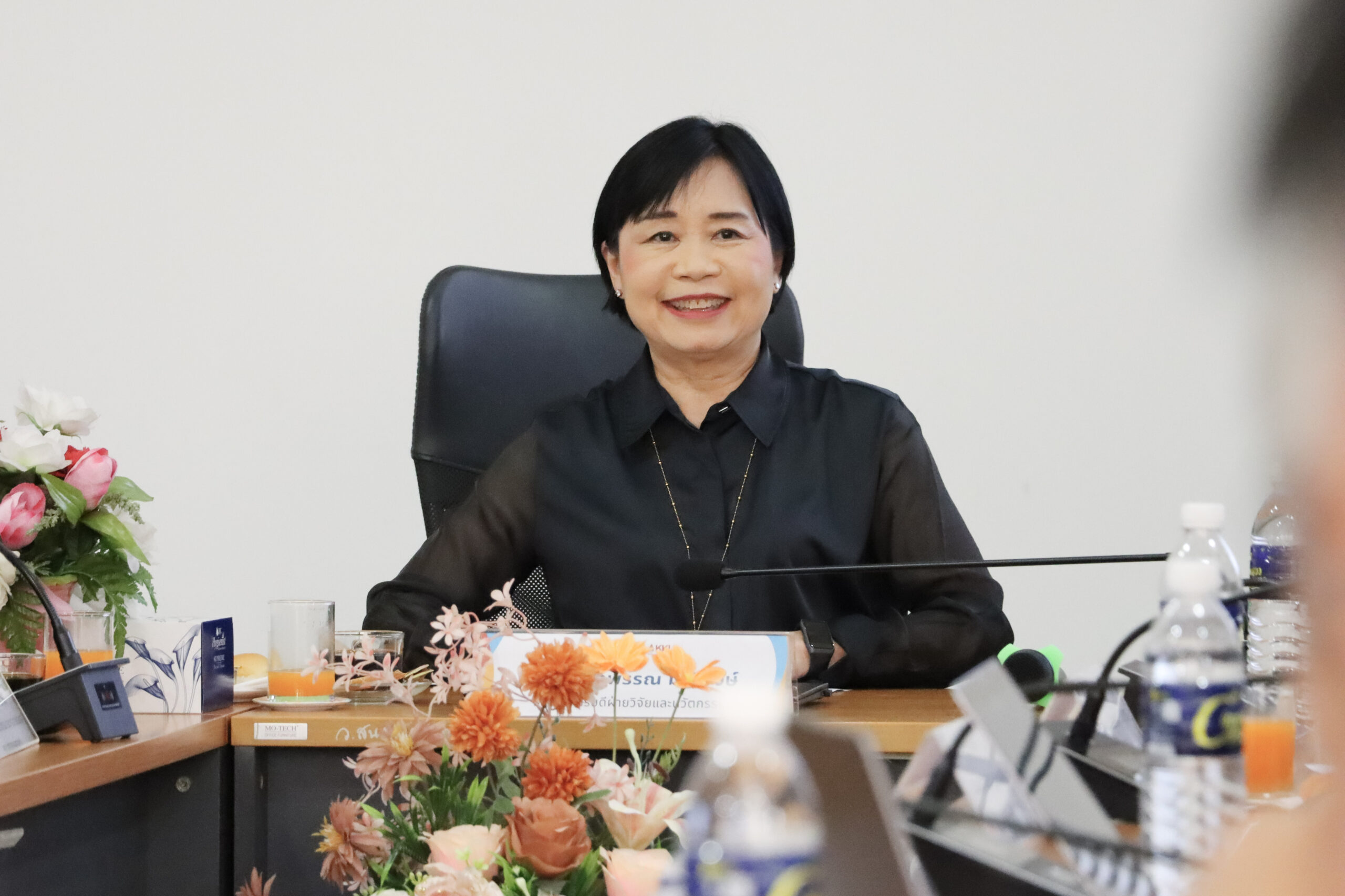 ศ.พญ.ผิวพรรณ มาลีวงษ์ รองอธิการบดีฝ่ายวิจัยและนวัตกรรม พร้อมด้วย ศ.ธิดารัตน์ บุญมาศ รองอธิการบดีฝ่ายวิสาหกิจและสังคมยั่งยืน ให้การต้อนรับ พร้อมนำเสนอภาพรวมการดำเนินงานวิจัย และแลกเปลี่ยนแนวทางการขับเคลื่อนงานวิจัยให้สอดคล้องกับเป้าหมายการเพิ่มขีดความสามารถของประเทศ