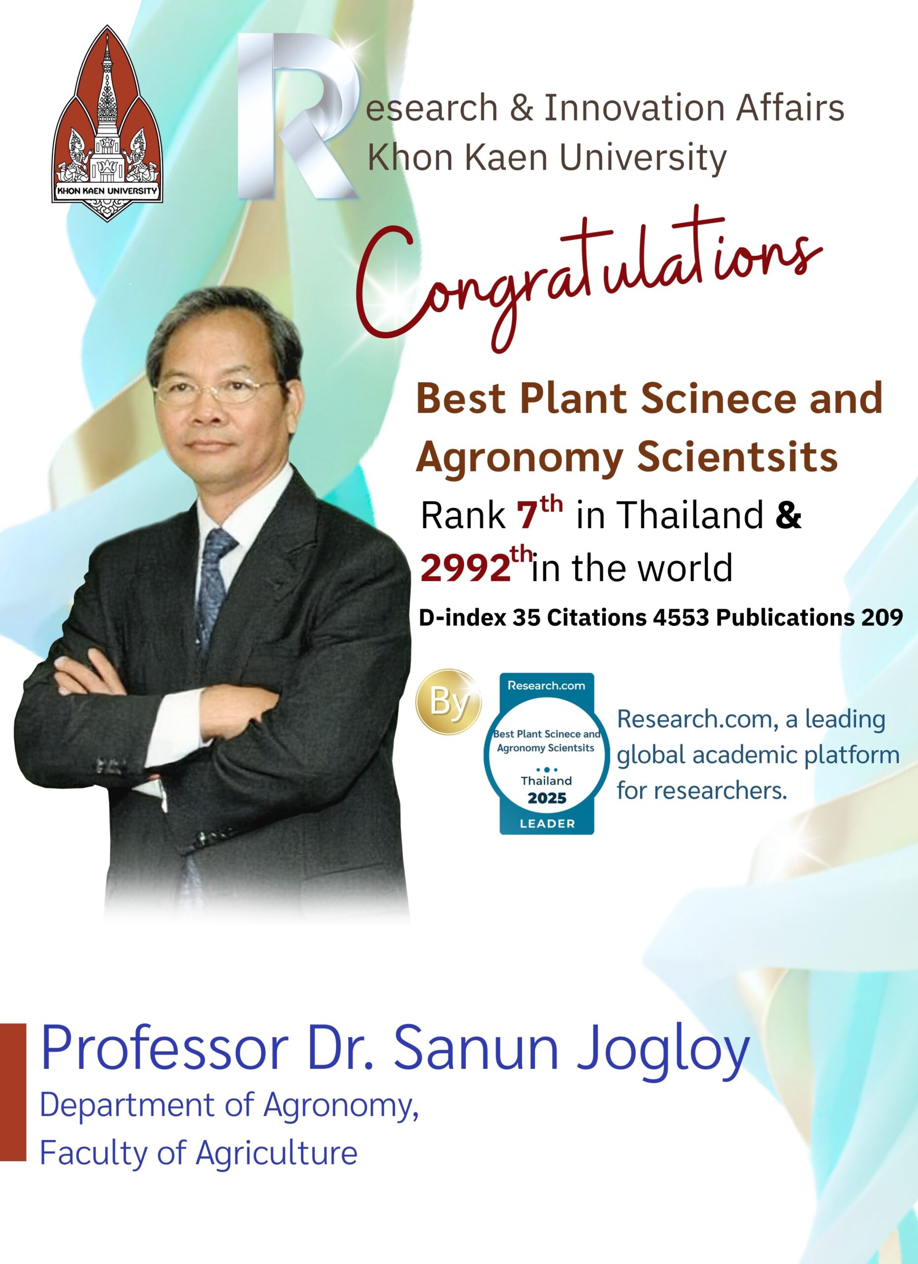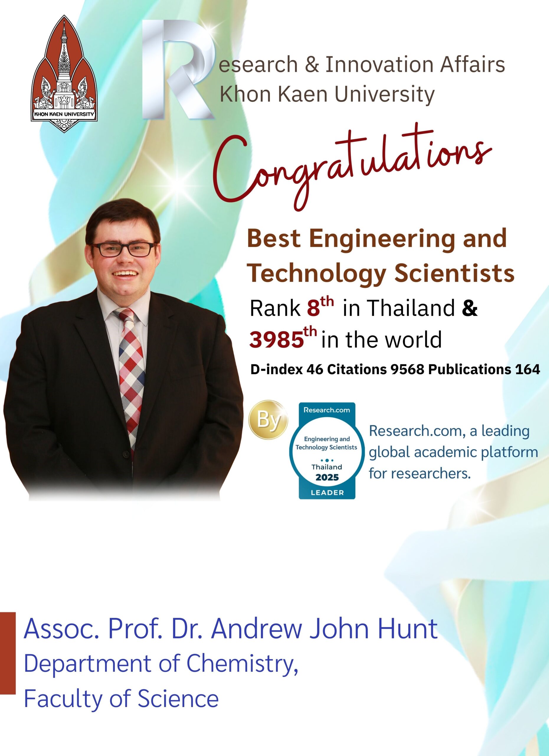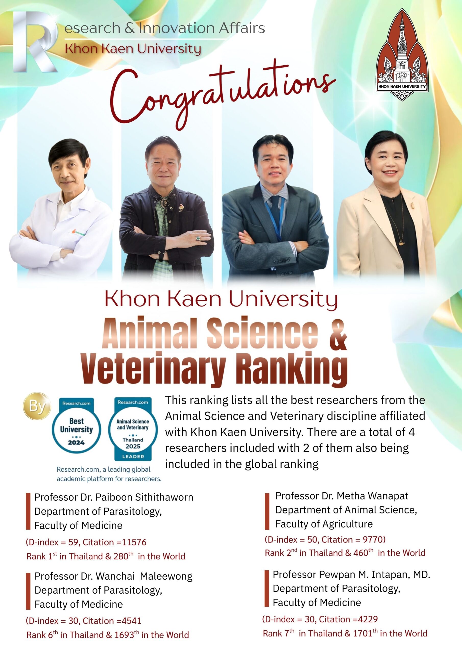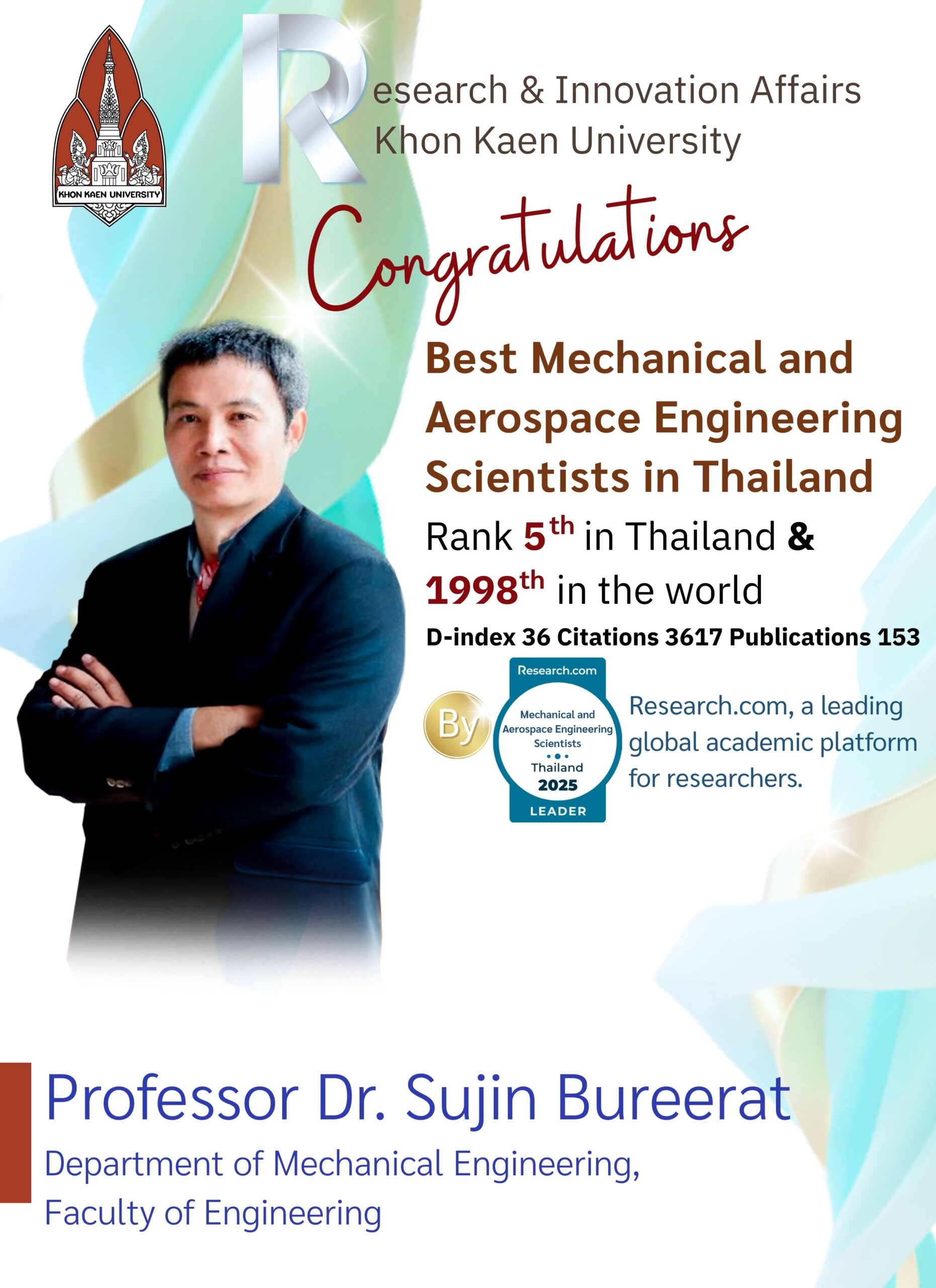 The Research and Innovation Affairs of Khon Kaen University expresses heartfelt pride in the achievements of its faculty members, who exemplify research excellence and bring global recognition to the University.