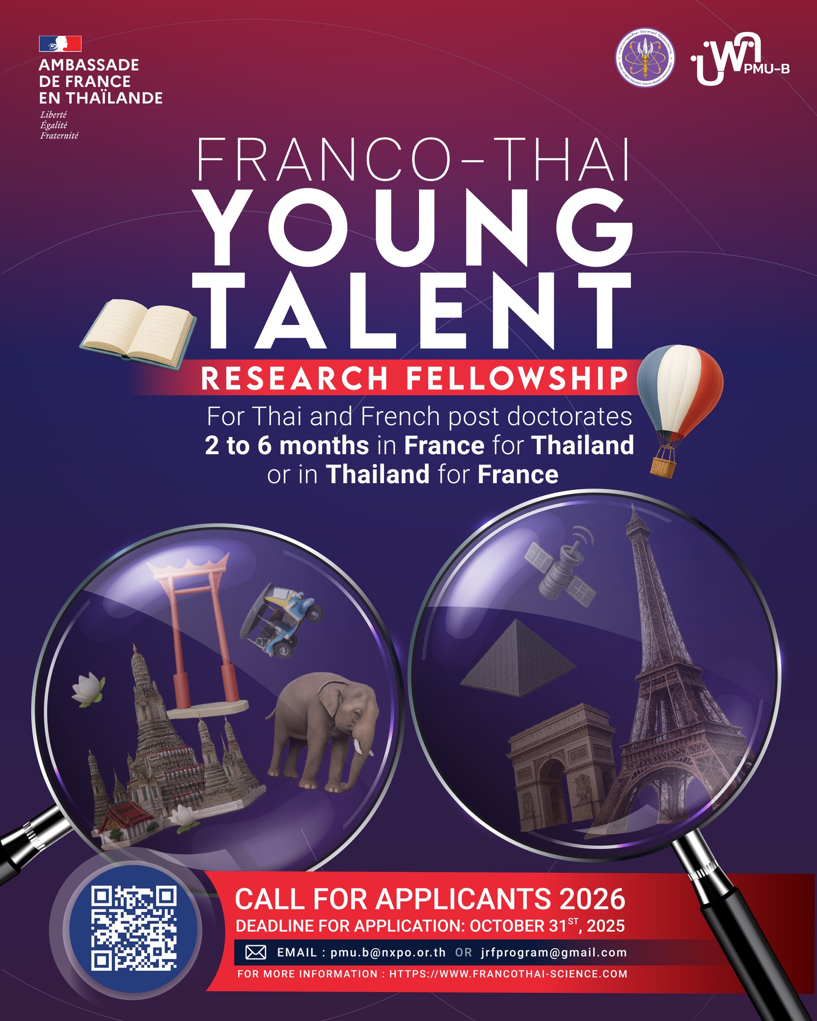 The Franco-Thai Young Talent Research Fellowship Program aims to jumpstarting the careers of young researchers between Thailand and France by giving them the opportunities to develop promising collaborations with their counterparts.