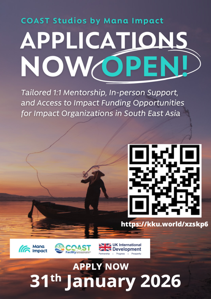 โอกาสดีสำหรับอาจารย์และนักวิจัย มข.! ร่วมสมัครโครงการ COAST Studios by Mana Impact COAST Studios by Mana Impact ขอเชิญ อาจารย์ และนักวิจัย มหาวิทยาลัยขอนแก่นสมัครเข้าร่วมโครงการบ่มเพาะและสนับสนุนนวัตกรรมเพื่อสร้าง ผลกระทบจริงด้านสิ่งแวดล้อมและเศรษฐกิจสีน้ำเงิน (Blue Economy) โครงการ COAST Studios หลักสูตรสนับสนุนเชิงลึก ระยะเวลา 7 เดือน ให้คำปรึกษาแบบ 1:1 Mentorship […]