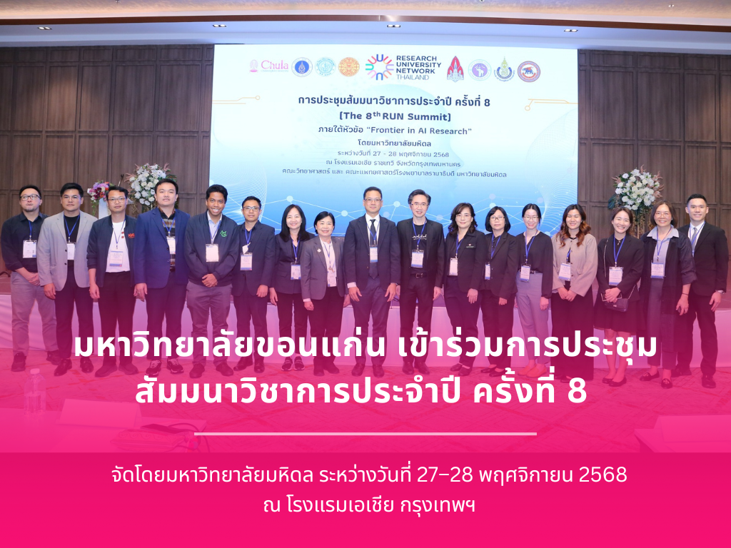 มหาวิทยาลัยขอนแก่น เข้าร่วมการประชุมสัมมนาวิชาการประจำปี ครั้งที่ 8 (The 8th RUN Summit) ภายใต้หัวข้อ “Frontier in AI Research” Khon Kaen University (KKU), led by Professor Pewpan Maleewong, MD, Vice President for Research and Innovation, and […]